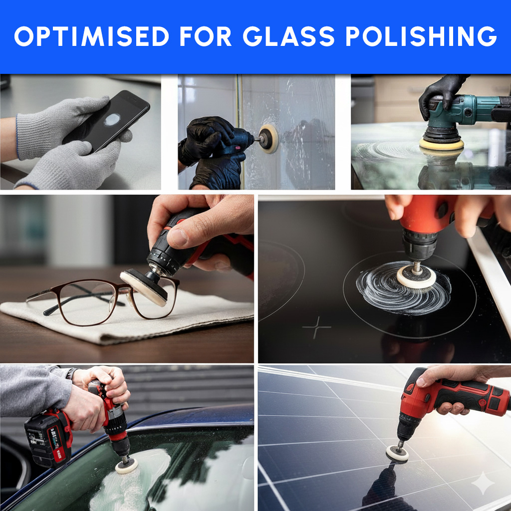 This ready to use compound works with any felt polishing pad or drill attachment. It buffs away surface imperfections such as minor scratches, wiper marks, light abrasion, water staining and dull patches. Whether you are restoring windows, windscreens or interior glass panels, this compound delivers fast, predictable and professional results.