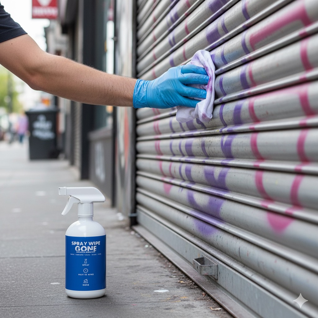 Metal surfaces show graffiti instantly. Paint dries fast, bonds tight and highlights every tag and scuff. Standard cleaners smear or leave shadows behind. This version of Spray Wipe Gone is engineered for metal and gives you a clean controlled way to remove paint without dulling the finish or causing corrosion.